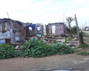 Waste next to shacks