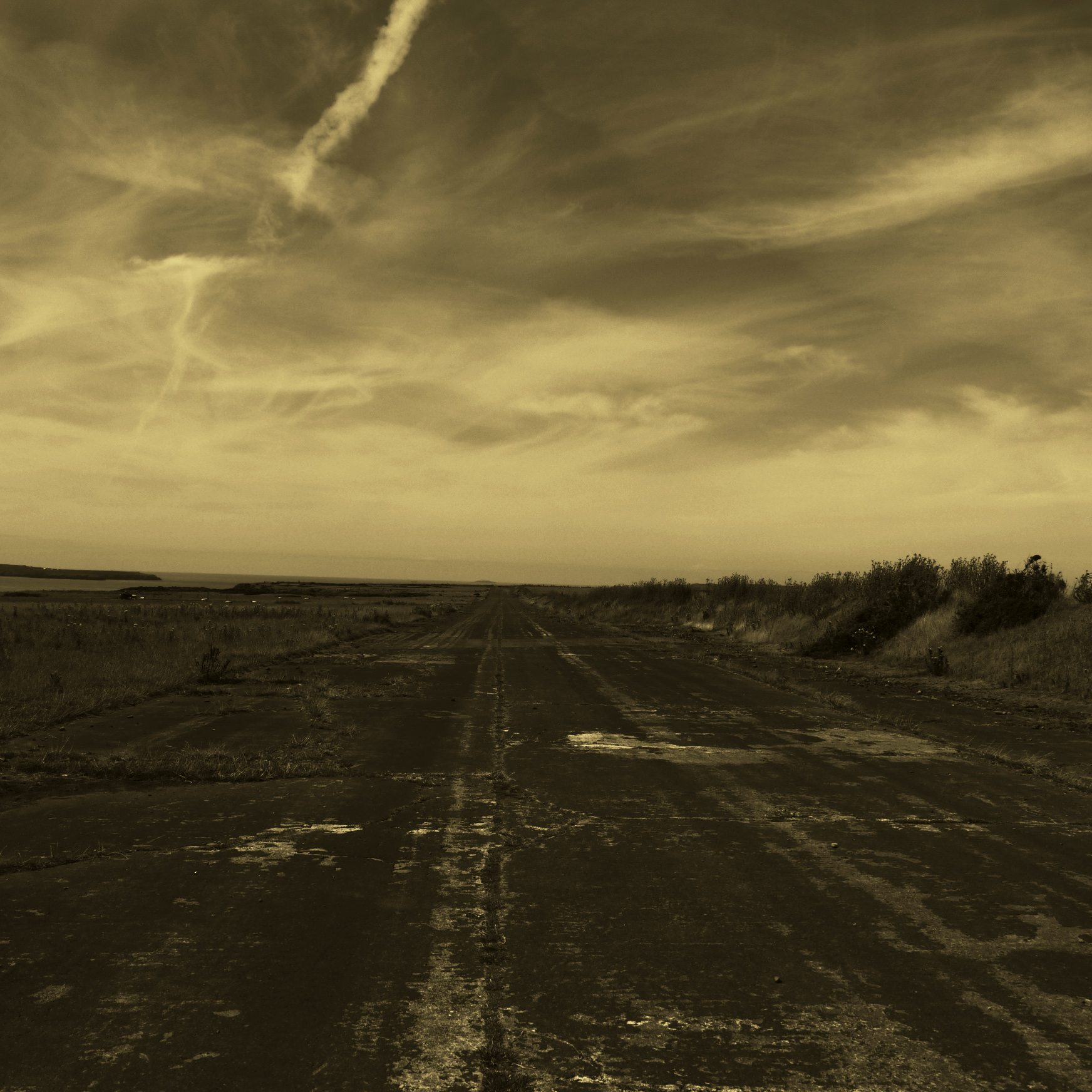 Finally found the time to take a look at the pictures I took during my trip through Wales this August. This one shows an abandoned airfield near Dale photographed in Sepia.