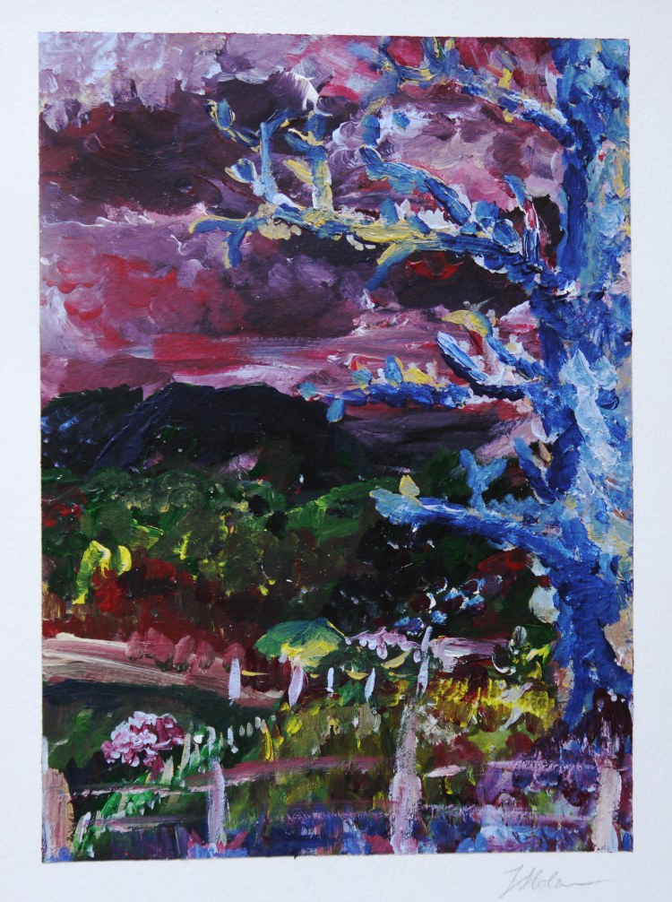 I just went through my drawers actually looking for something else and found a few paintings I did in 2015 when I was on a creative holiday with a friend and we tried out different styles in painting. They are all done in acrylics but with a very different approach to each painting.