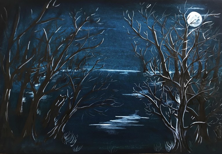 One of my favourite paintings. I finished it while being stuck in self-isolation and dreaming about midnight walks.